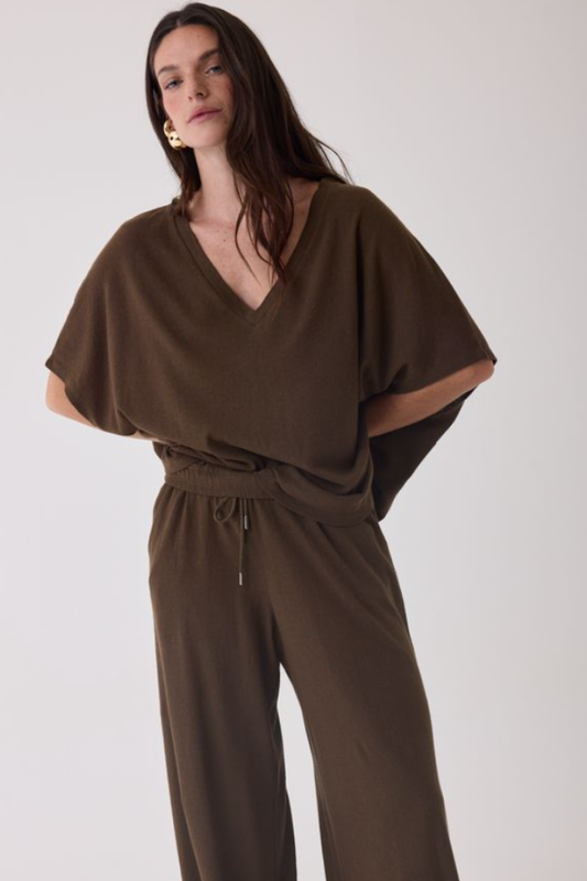Cotton Linen Vneck Tee