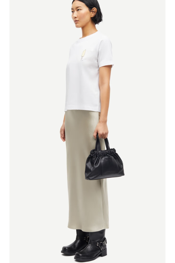 Satin maxi skirt with a slim fit. Elastic waistband. Main material made from 100% recycled polyester. This product is GRS certified. Each stage of the supply chain has met strict social, environmental, and chemical requirements.