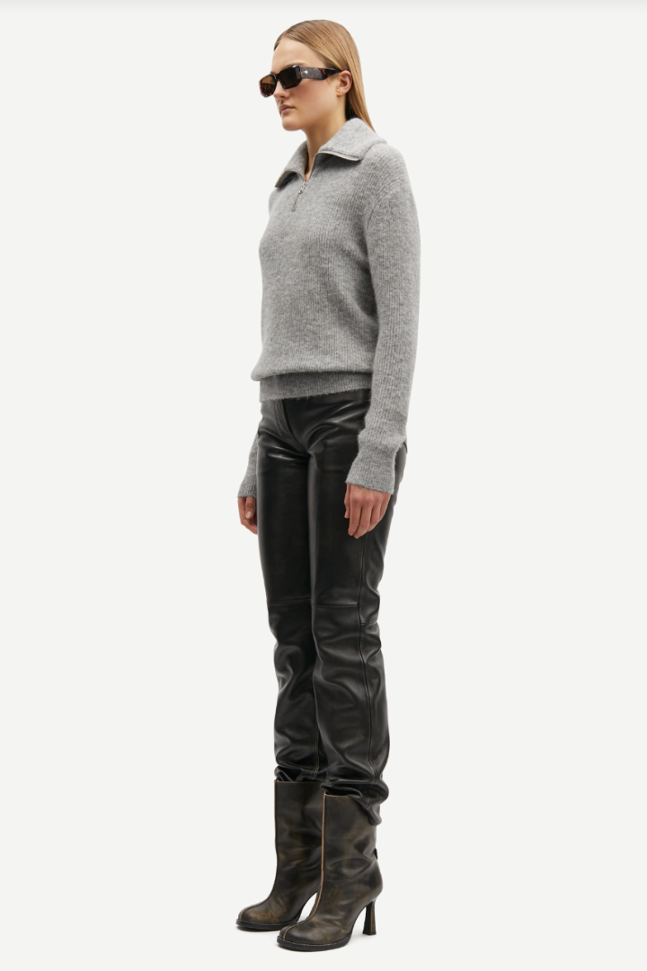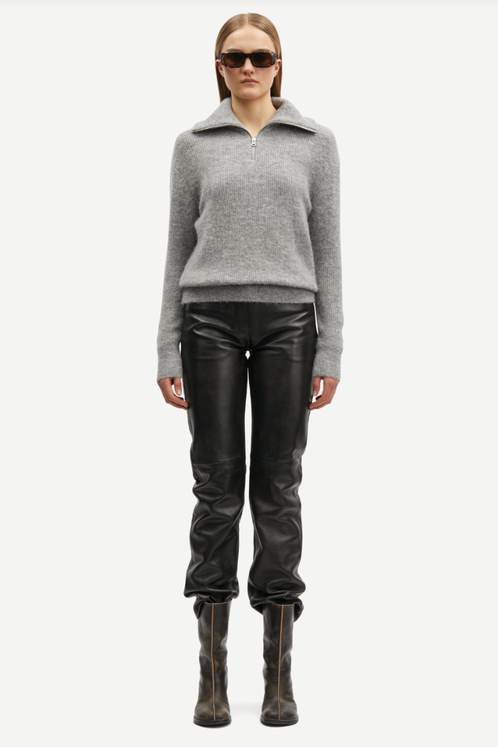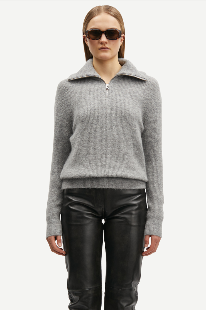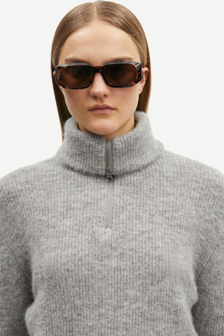 Knitted sweater with a loose fit and dropped shoulders. Short zipper closure on the front. Rib-knitted cuffs and hem. Main material made from an elastic blend with wool and alpaca wool. This product is RWS certified. The RWS describes and certifies animal welfare and land management practices in wool fibre production and tracks the certified material from farm to final product.
