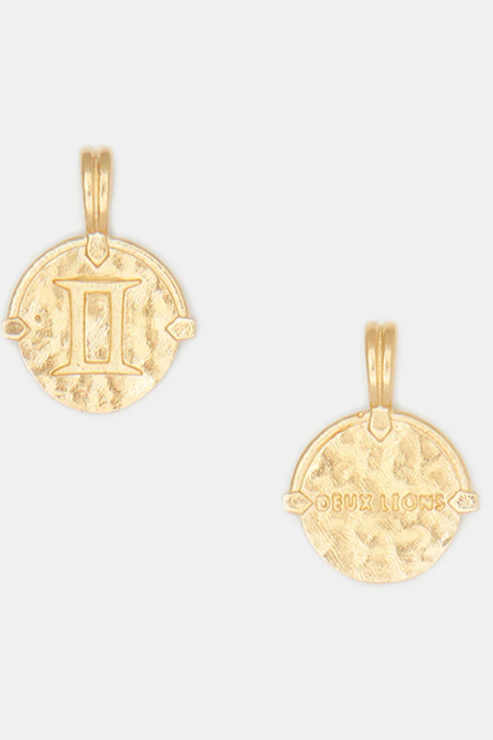 These necklaces are adorned with the universal zodiac sign. They are all hand-drawn by our beautiful friend and artist, Kaïa Etezadi for Deux Lions Jewelry.