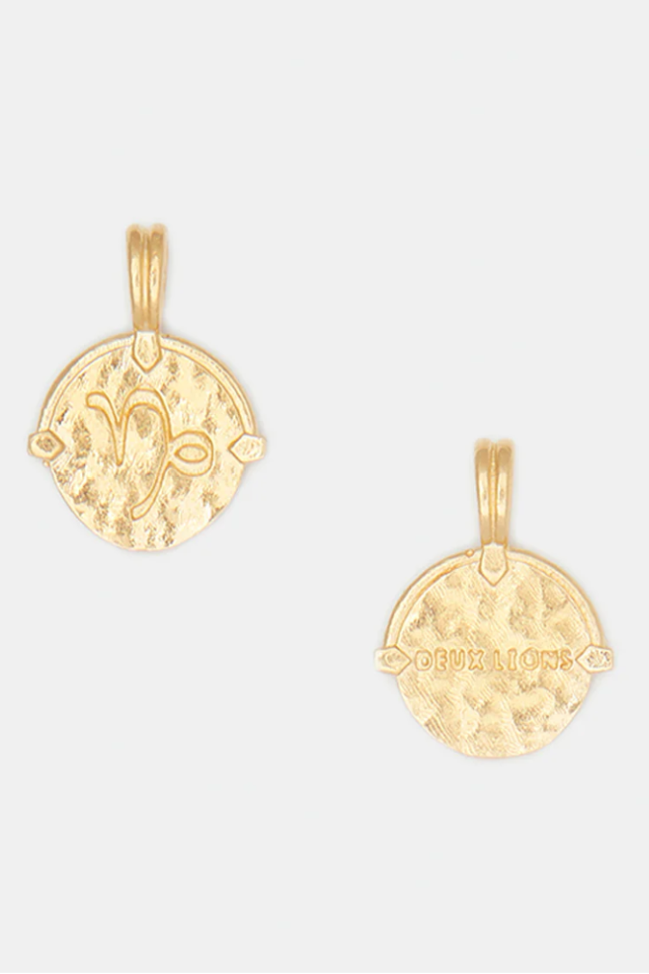These necklaces are adorned with the universal zodiac sign. They are all hand-drawn by our beautiful friend and artist, Kaïa Etezadi for Deux Lions Jewelry.