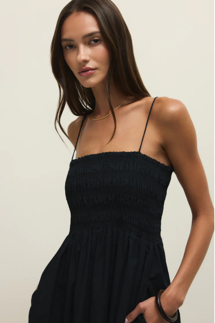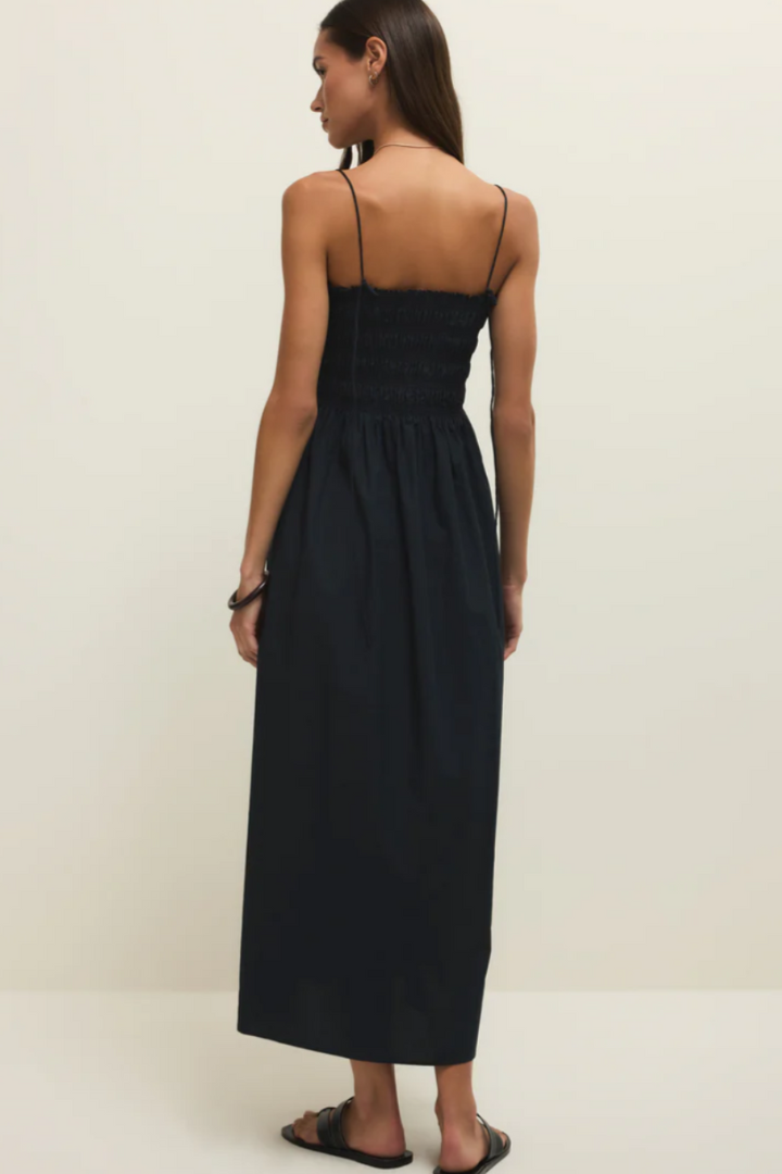 Made from lightweight cotton poplin, this midi dress features a fully smocked bodice that fits close to the body before flowing into a relaxed skirt. The square neckline and side pockets make it as practical as it is pretty.