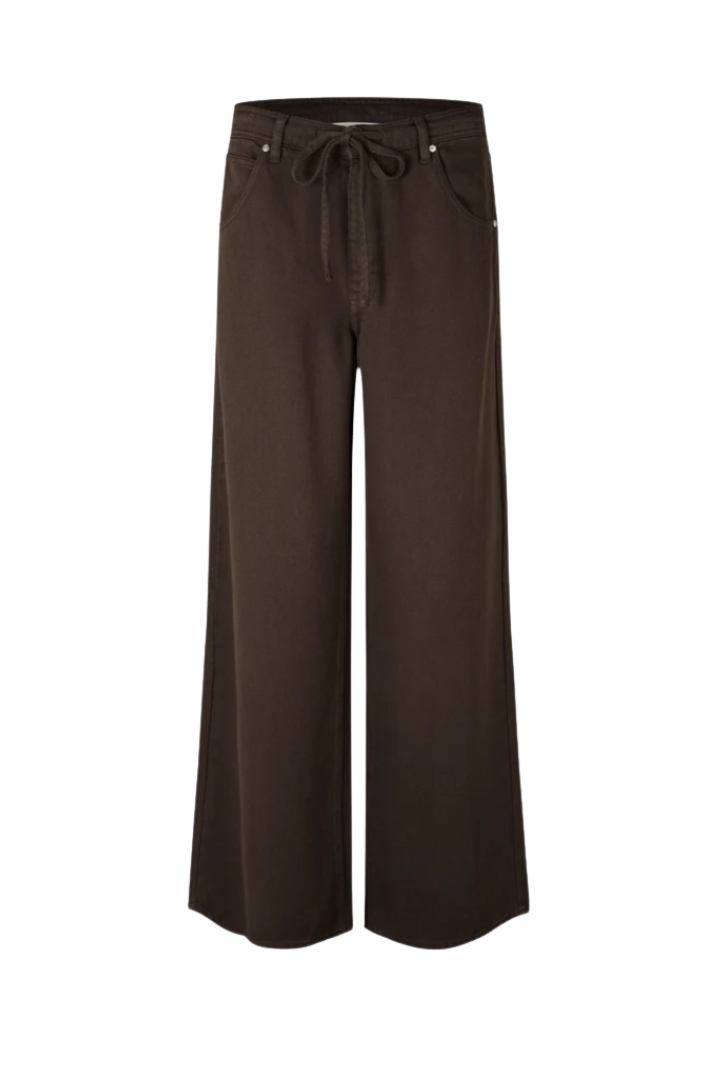Second Female drapy jeans with belt. The jeans are made in soft and drapy lyocell with tonal stitching. Featuring a concealed zip fastening and button at the front and drawstring with tie fastening at the waist. Five-pocket style. Silver branded hardware. Mid waist with loose, straight leg.