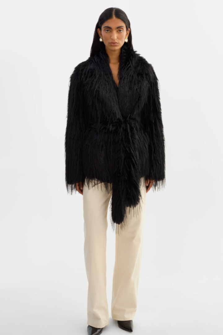Make a statement in texture. The ISLA Faux Fur Belted Coat features a dramatic long-hair faux fur finish, wrapped in an oversized silhouette with a self-tie belt to cinch the waist. Luxurious, voluminous, and bold, this is the piece that owns the room.