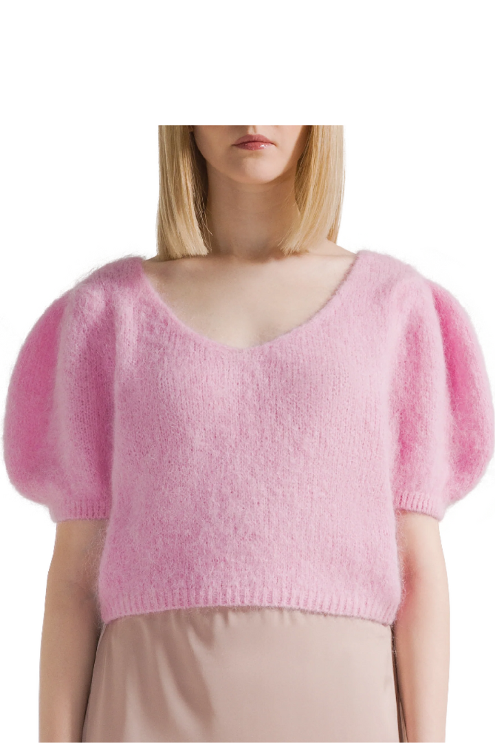 The Lolanda pullover, with its shortened design, offers an exceptionally soft touch, imparting a sense of airiness and lightness to your ensemble. Its short sleeves, adorned with an elastic band, render it an ideal choice for the spring and summer seasons. Lolanda pairs perfectly with high-waisted trousers or a skirt for a sophisticated business attire, as well as with jeans for a relaxed, casual style