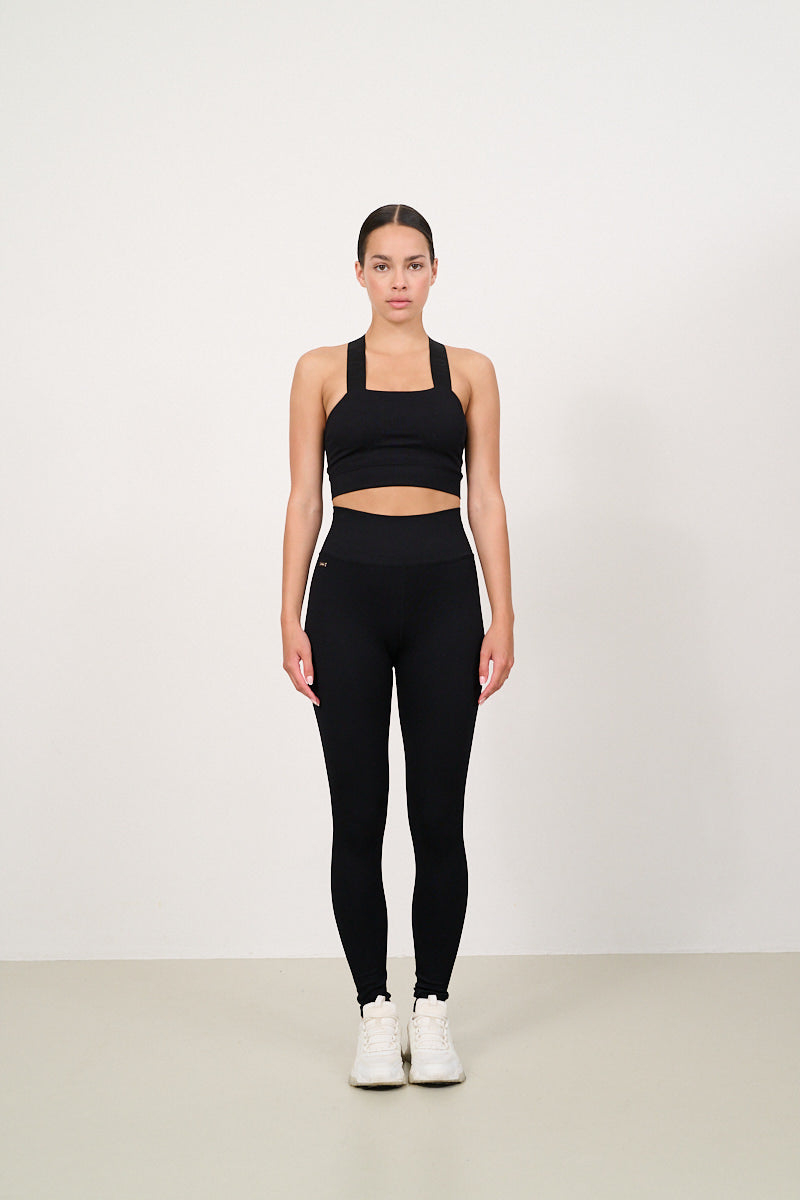 The double-layered bra makes movement the most comfortable and provides you with medium support. Complete your sporty look with our classic, the Luna high-waisted rib legging.