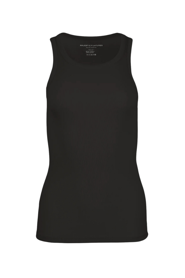 This lyocell cotton baby rib tank features a luxurious second-skin fit. Fluid and comfortable, this tank is knitted in a unique mix of lyocell and cotton. The lyocell, also called 'vegetable silk' is an eco-friendly fabric made from wood. The fabric is resistant, lightweight, and soft. Trendy and iconic, this ribbed tank will follow you through the season.