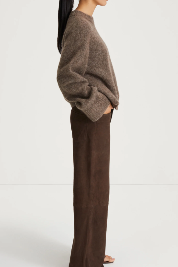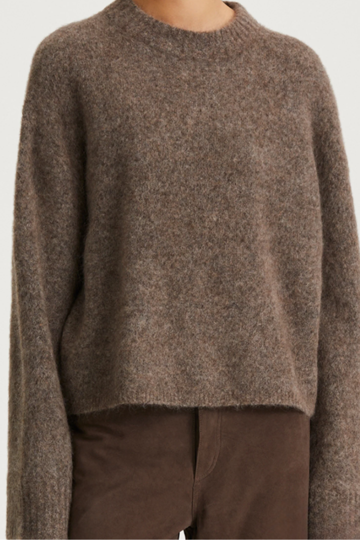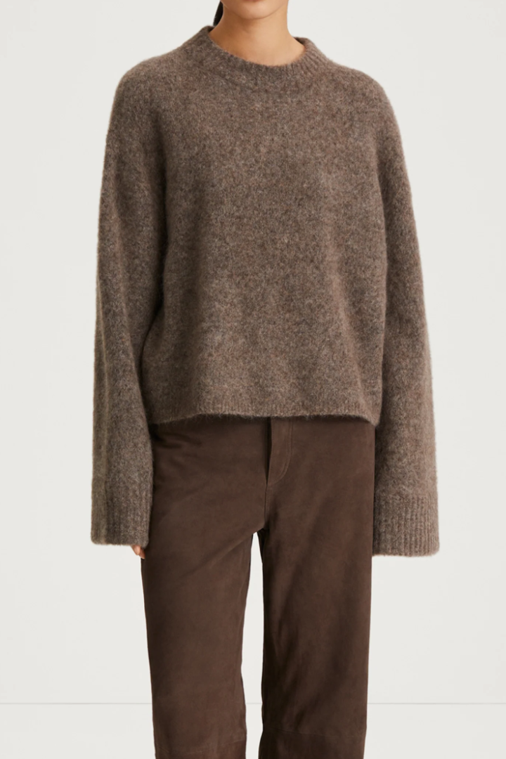 Niclas Short Sweater is a boxy, cropped oversized knit crafted from a luxurious Mohair blend. This stylish sweater features full-length sleeves, dropped shoulders, and a classic round neckline. Perfect for layering or wearing on its own.