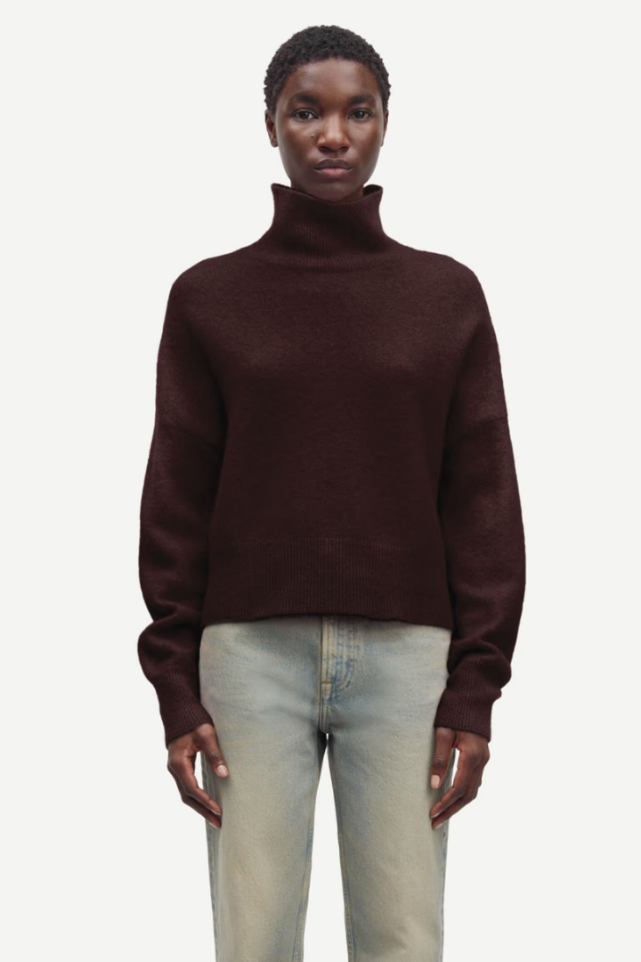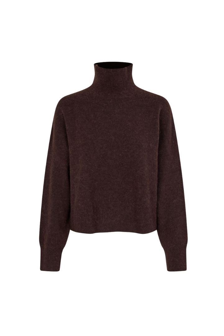 Turtleneck sweater with a regular fit and dropped shoulders. Rib-knitted collar, cuffs, and hem. Fully fashioned seams. Main material made from a blend with wool, alpaca wool, and recycled polyester. This product is RWS certified. The RWS describes and certifies animal welfare and land management practices in wool fibre production and tracks the certified material from farm to final product.