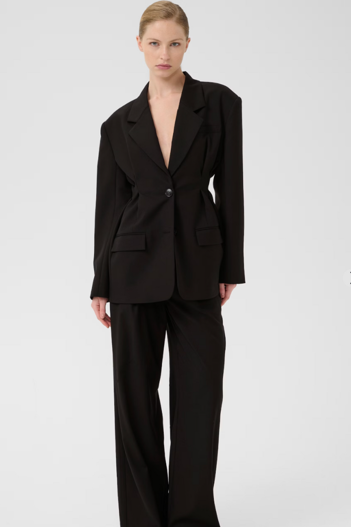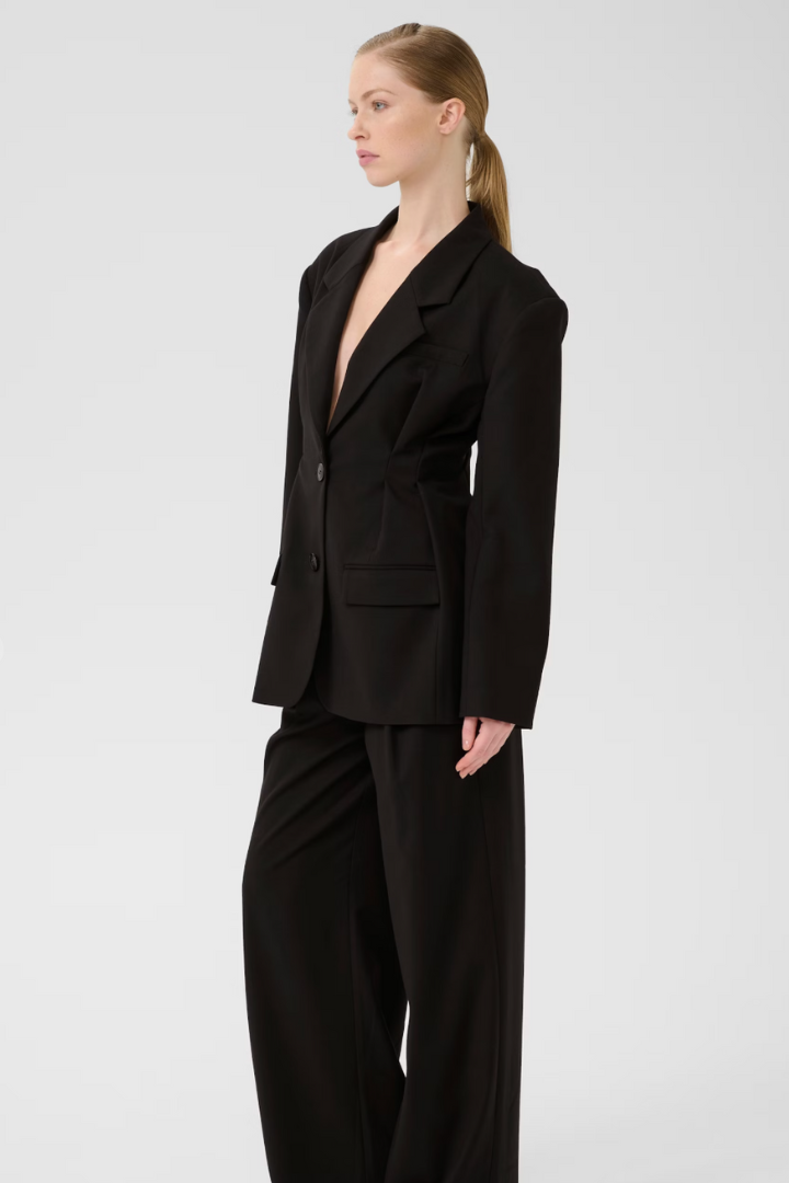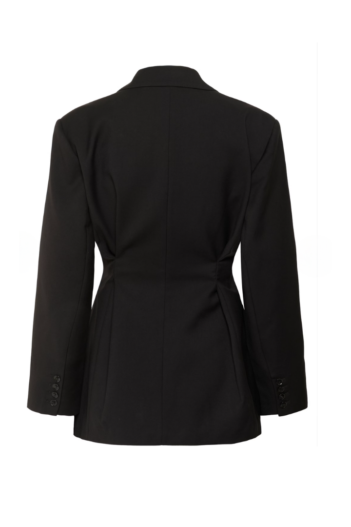 Tailored, oversized blazer with classic lapels and two-button closure. The design is defined by waist darts that create a shaped silhouette. The model is 175 cm tall and is wearing size S/36.