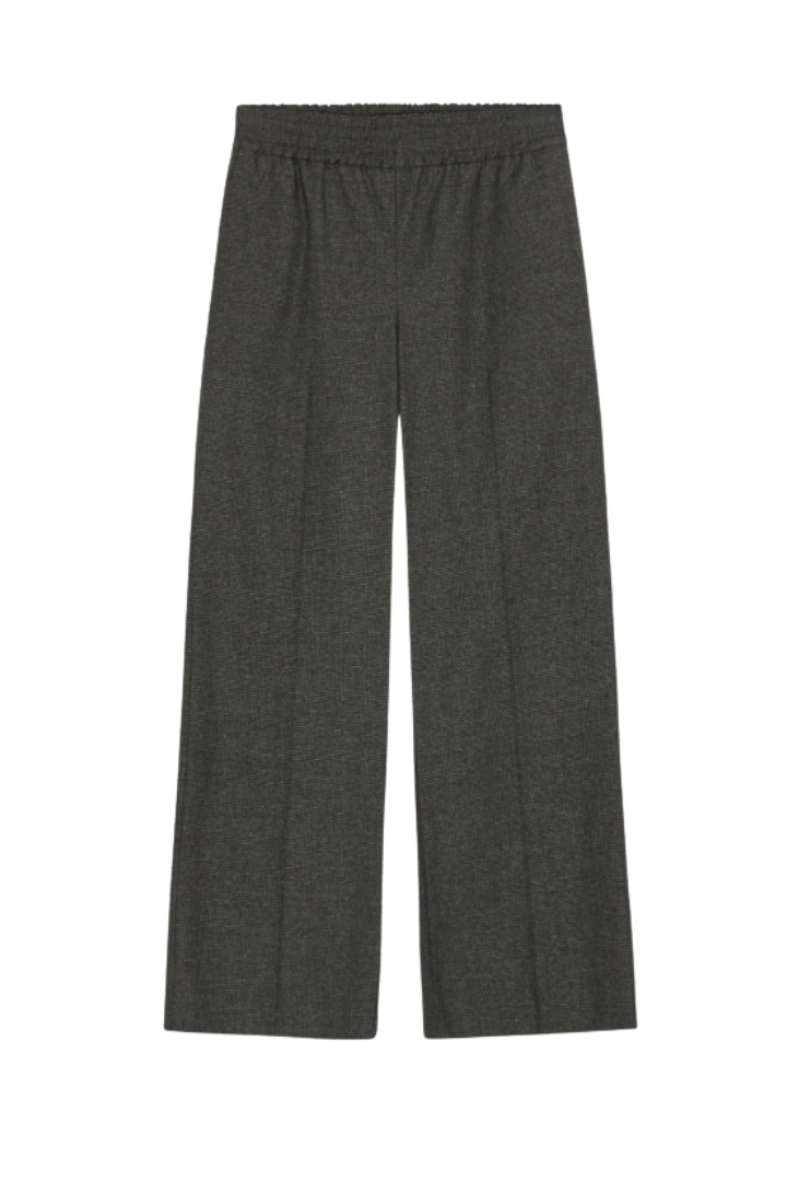 Introducing the Pinky Pants: Loose-fitted pants with tailoring details, featuring a soft elastic waistband, pockets at the side seams, paspel pockets at the back, and press folds at the front and back.