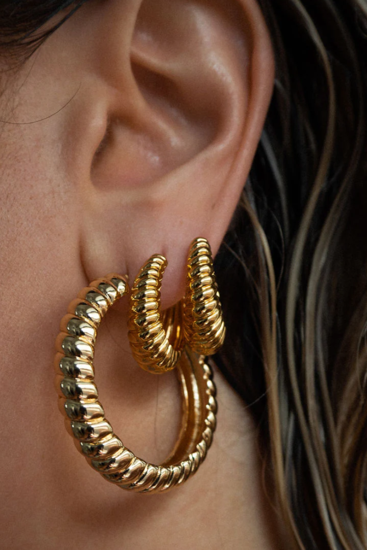 - Ridged version of our best-selling medium-sized metal tear-drop shaped hoops that are perfect for everyday wear