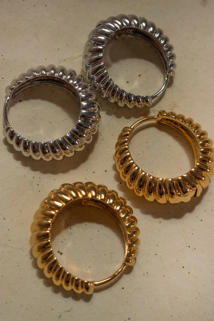 - Ridged version of our best-selling medium-sized metal tear-drop shaped hoops that are perfect for everyday wear