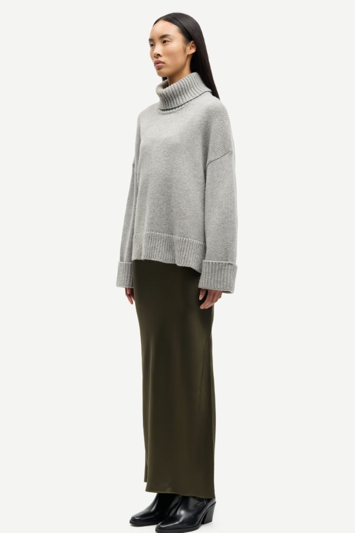 Turtleneck sweater with an oversized fit and dropped shoulders. Rib-knitted collar, cuffs, and hem. Main material made from a blend including wool. This product is RWS certified. The RWS describes and certifies animal welfare and land management practices in wool fibre production and tracks the certified material from farm to final product.