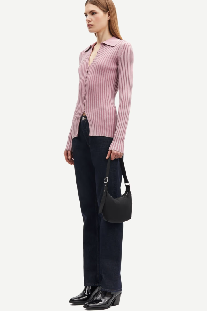 Long-sleeved rib-knitted shirt with a slim fit. Button closure on the front with opening at the bottom. Contrasting rib-knitted cuffs and hem. Washed look. Main material made from 100% organic cotton.