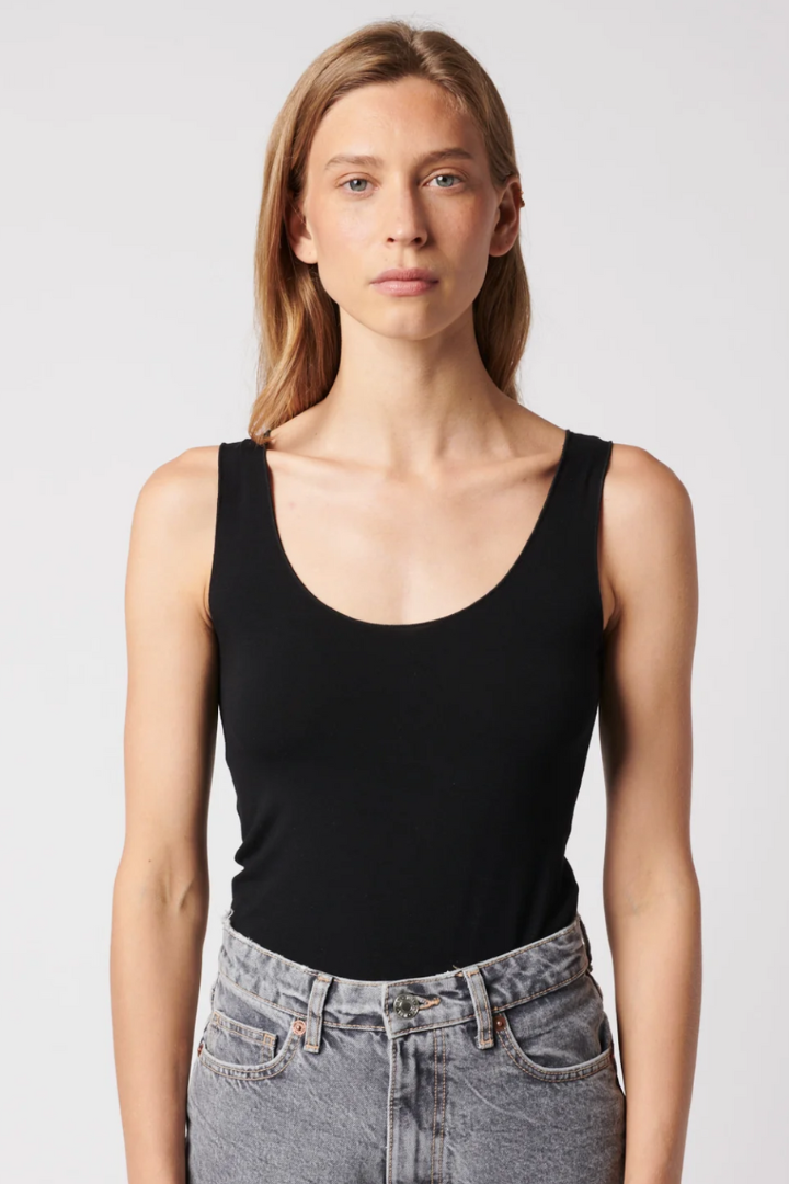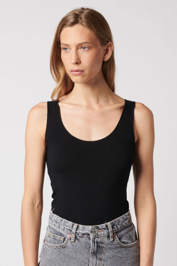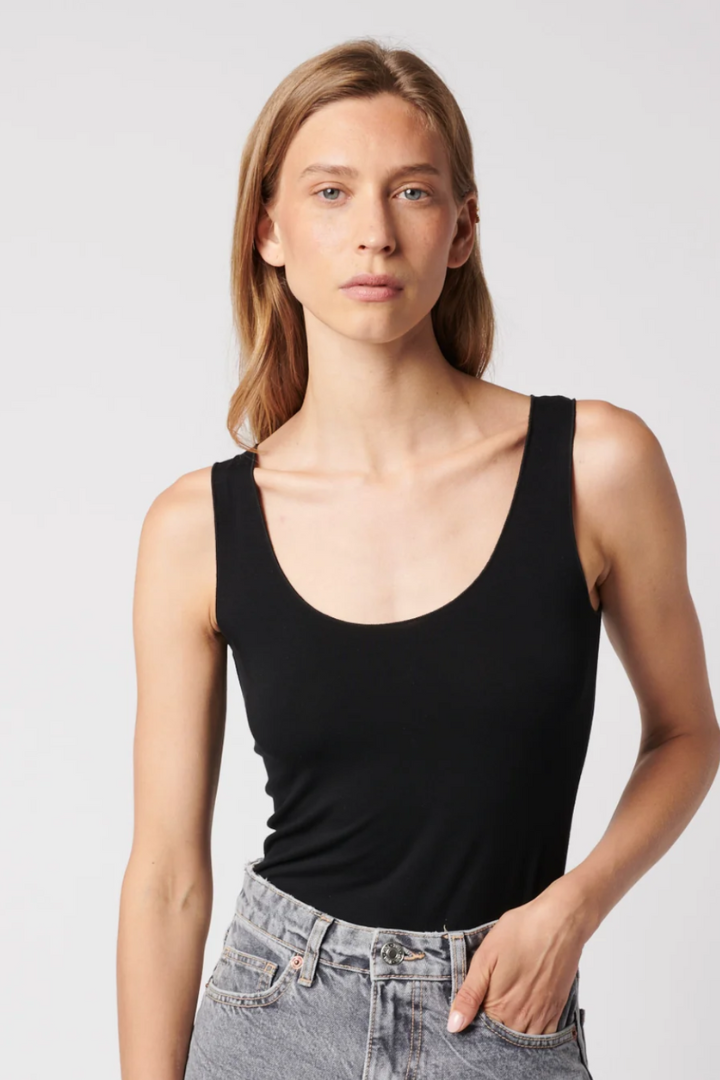 This soft touch tank features a luxurious second-skin fit. A unique and sumptuous blend of the highest quality fibers, this tank is ultra-soft, color fast, anti-microbial, and lightweight. Your second skin layering piece. The fabric will never pill, stretch, fade, or wrinkle.