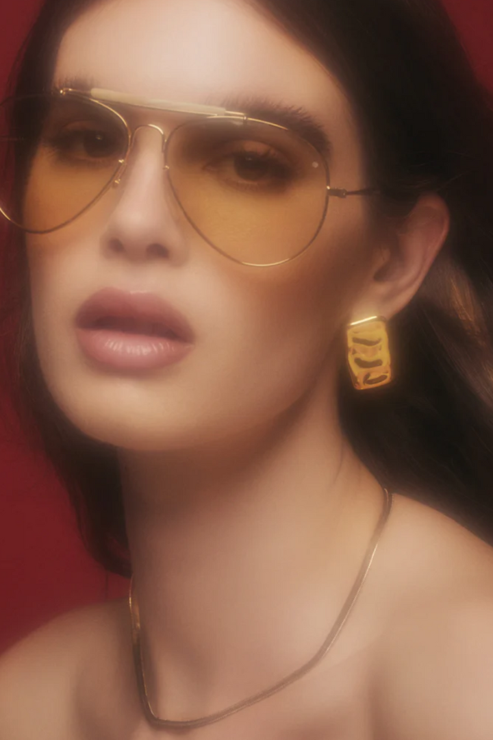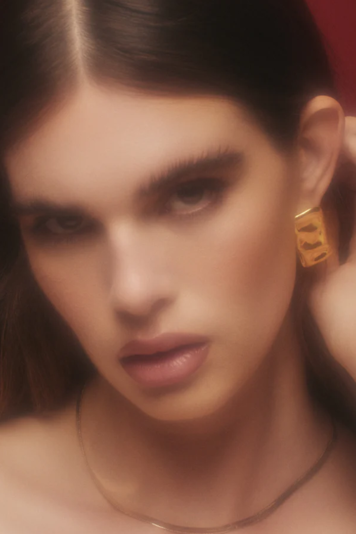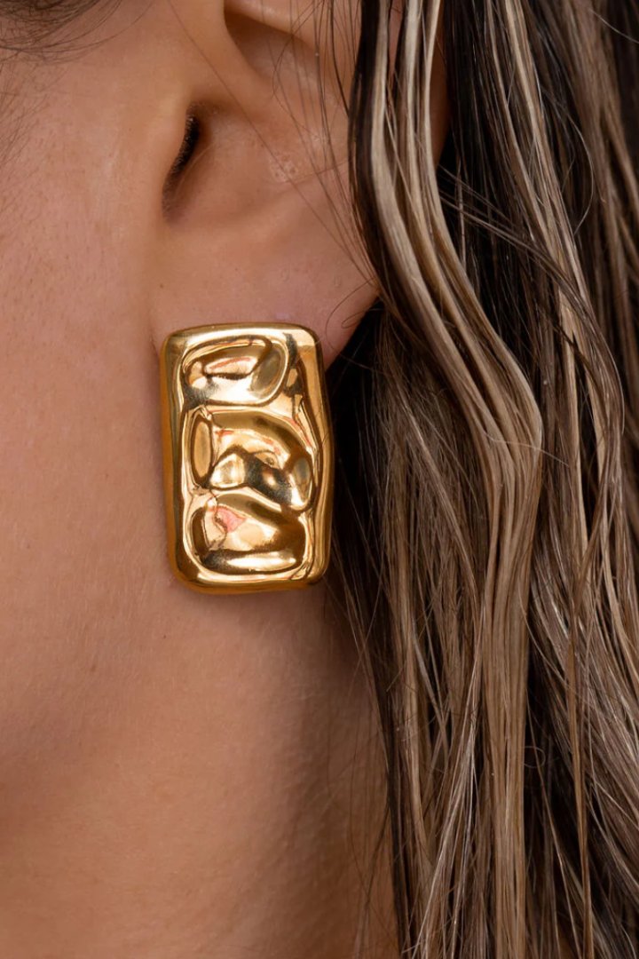 - Pair of rectangular statement stud earrings featuring an organic textured pattern and shape