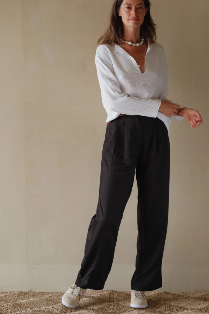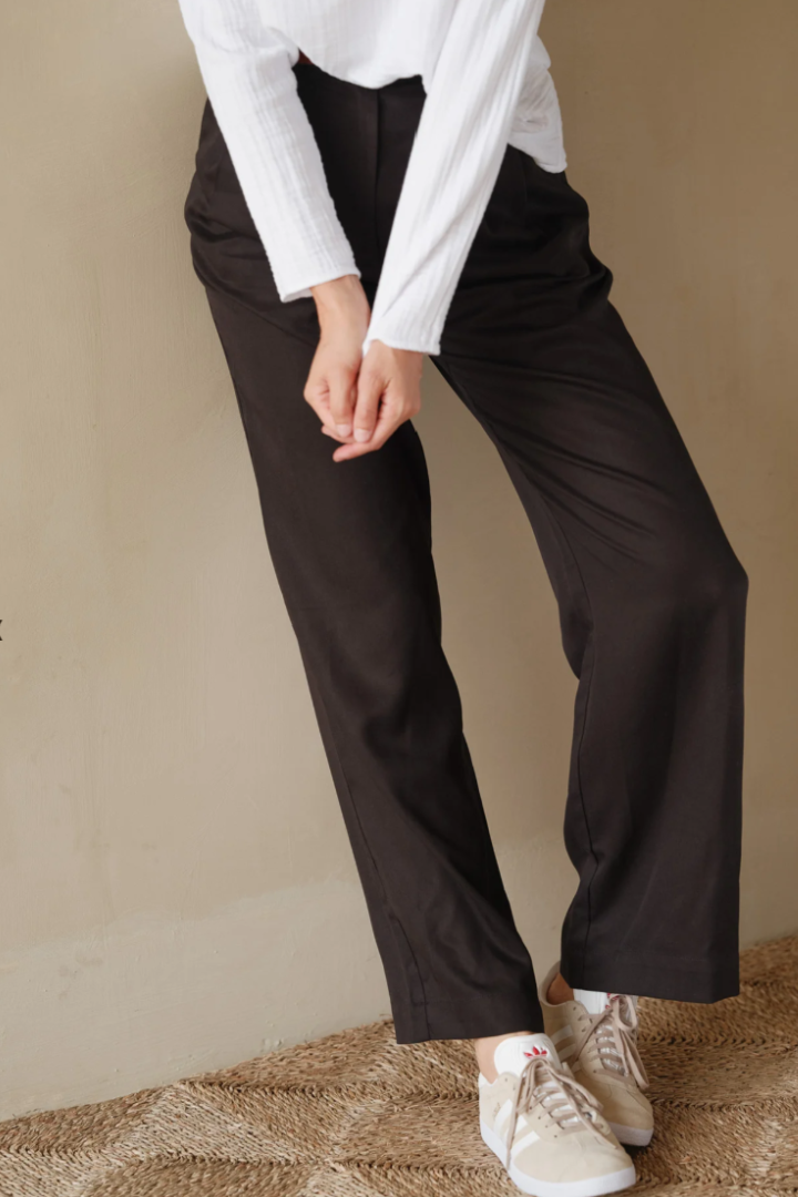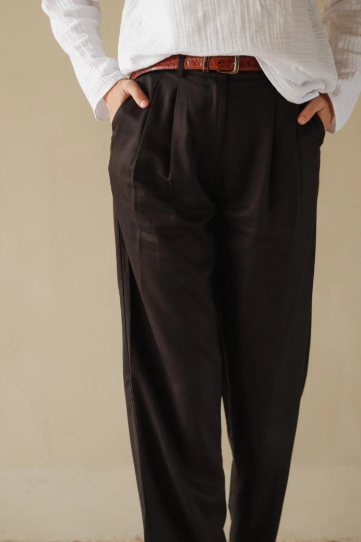 Drawing inspiration from traditional suiting with a twist, DONNI.'s pleated trouser is a favourite classic go-to style. Ready to take you anywhere feeling polished and comfortable. Plus, it's made from cellulose fibers so it's better for the planet.
