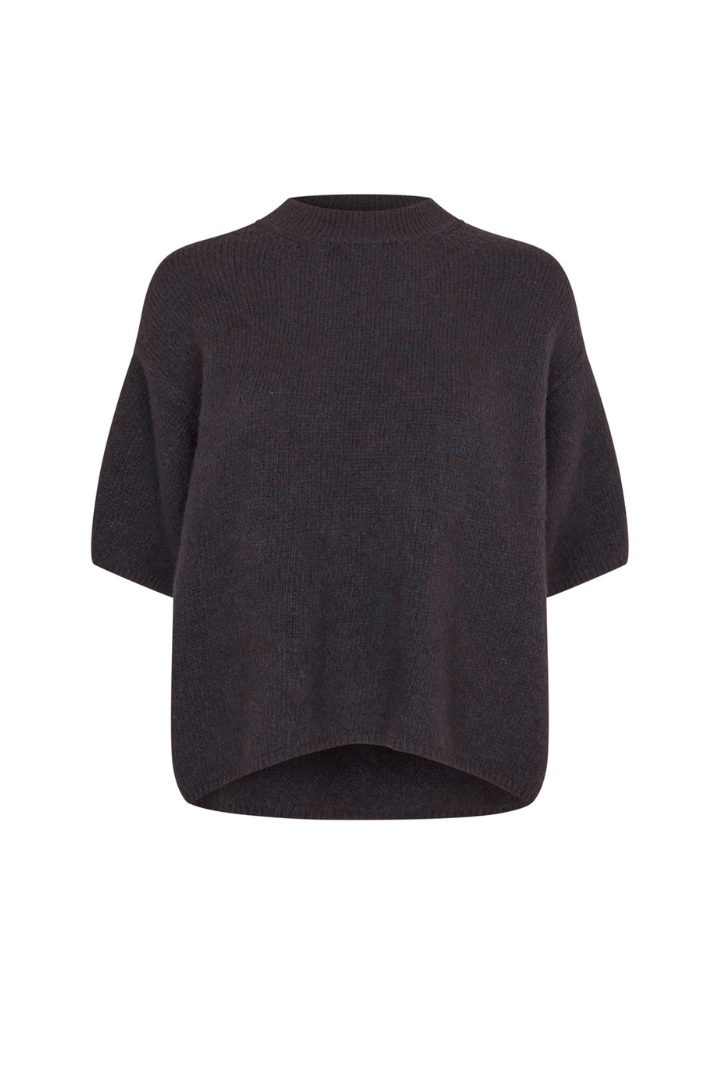 Second Female short-sleeved pullover. The pullover is made in a soft and stretchy alpaca blend. Featuring ribbed trim at neck, sleeve ends and bottom hem. Wide and relaxed fit.